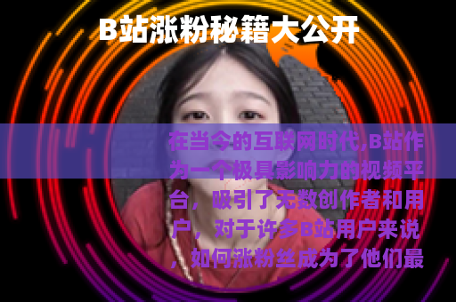 在当今的互联网时代,B站作为一个极具影响力的视频平台,吸引了无数创作者和用户,对于许多B站用户来说,如何涨粉丝成为了他们最为关注的问题之一,以下是一些在B站涨粉的有效方法。 质量是关键,要确保你的视频内容具有独特性、趣味性和实用性,无论是搞笑、知识科普、美食制作还是游戏攻略等各种类型,都要做到在同类内容中脱颖而出,如果你擅长游戏解说,那么就要展现出你对游戏深刻的理解和独特的见解,让观众在观看你的视频后能有所收获,这样他们才会更愿意关注你,期待你的下一次更新。