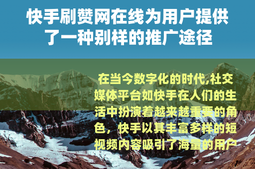 在当今数字化的时代,社交媒体平台如快手在人们的生活中扮演着越来越重要的角色,快手以其丰富多样的短视频内容吸引了海量的用户,而在这个竞争激烈的平台上,获得更多的点赞成为了许多用户追求的目标之一,快手刷赞网在线应运而生,为用户提供了一种新的助力方式。