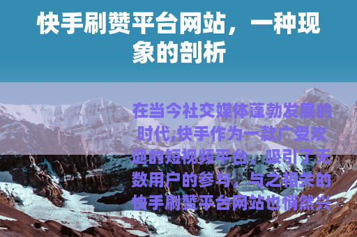 在当今社交媒体蓬勃发展的时代,快手作为一款广受欢迎的短视频平台,吸引了无数用户的参与,与之相关的快手刷赞平台网站也悄然兴起,成为了一个值得关注的现象。