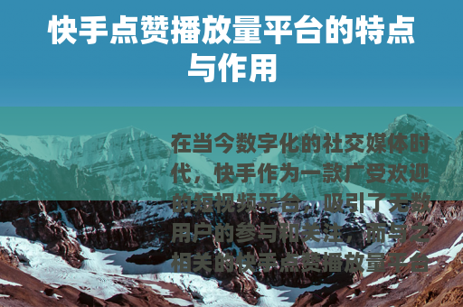 快手点赞播放量平台的特点与作用