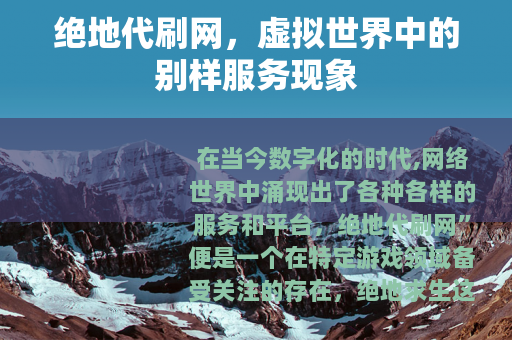 在当今数字化的时代,网络世界中涌现出了各种各样的服务和平台,绝地代刷网”便是一个在特定游戏领域备受关注的存在。