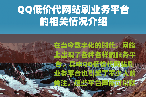 在当今数字化的时代,网络上出现了各种各样的服务平台,其中QQ低价代网站刷业务平台也引起了不少人的关注,这些平台声称可以以较低的价格为用户提供一系列的QQ相关业务刷量服务,如QQ空间的点赞量、评论量、QQ好友的添加量、QQ群的成员数量等等。