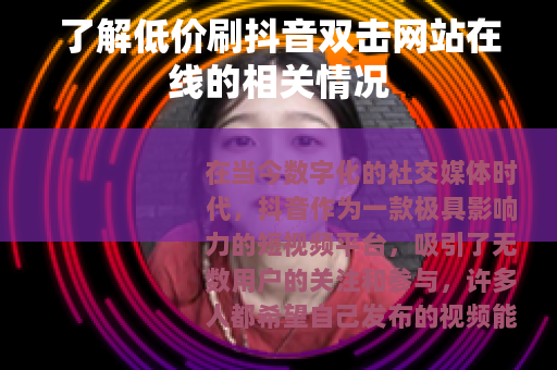 在当今数字化的社交媒体时代,抖音作为一款极具影响力的短视频平台,吸引了无数用户的关注和参与,许多人都希望自己发布的视频能够获得更多的双击点赞,从而获得更高的曝光度和人气,在这样的需求下,一些低价刷抖音双击网站在线应运而生。