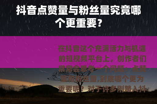 在抖音这个充满活力与机遇的短视频平台上,创作者们常常会思考一个问题:点赞量和粉丝量,到底哪个更为重要呢?