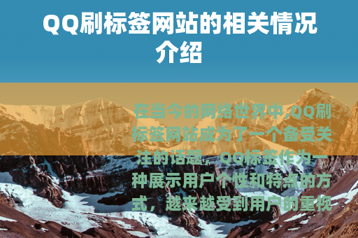 在当今的网络世界中,QQ刷标签网站成为了一个备受关注的话题,QQ标签作为一种展示用户个性和特点的方式,越来越受到用户的重视,而与之相关的刷标签网站也应运而生,为用户提供了一种快速增加标签数量和提升标签质量的途径。