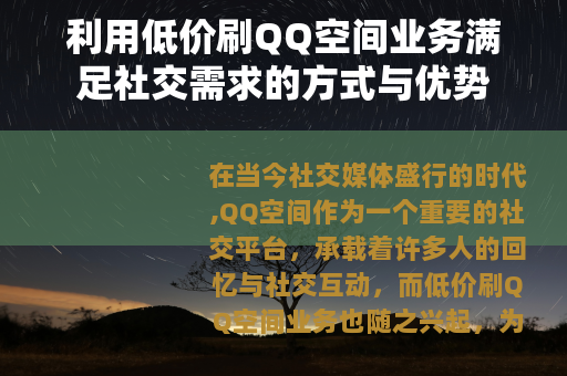 在当今社交媒体盛行的时代,QQ空间作为一个重要的社交平台,承载着许多人的回忆与社交互动,而低价刷QQ空间业务也随之兴起,为用户提供了一种独特的方式来提升自己在QQ空间的影响力和活跃度。