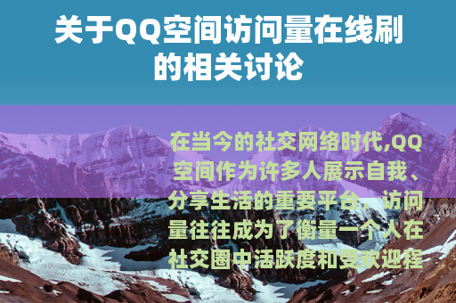在当今的社交网络时代,QQ空间作为许多人展示自我、分享生活的重要平台,访问量往往成为了衡量一个人在社交圈中活跃度和受欢迎程度的重要指标之一,不少人都希望自己的QQ空间能够拥有较高的访问量,从而获得更多的关注和互动,而QQ空间访问量在线刷的现象也随之应运而生。