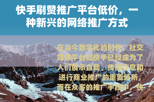 在当今数字化的时代,社交媒体平台如快手已经成为了人们展示自我、传播信息和进行商业推广的重要场所,而在众多的推广手段中,快手刷赞推广平台低价服务逐渐崭露头角,吸引了众多用户和商家的关注。