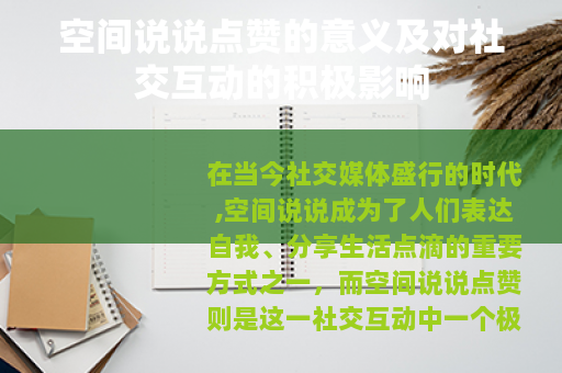 在当今社交媒体盛行的时代,空间说说成为了人们表达自我、分享生活点滴的重要方式之一,而空间说说点赞则是这一社交互动中一个极具特色且不可或缺的环节,它有着多方面的意义和积极影响。