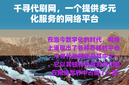 在当今数字化的时代,网络上涌现出了各种各样的平台,千寻代刷网便是其中之一,它以其独特的服务和功能,在网络世界中占据了一席之地。