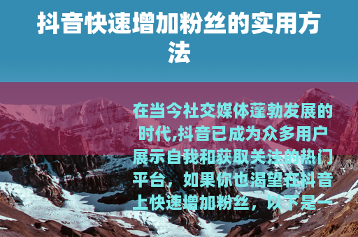 在当今社交媒体蓬勃发展的时代,抖音已成为众多用户展示自我和获取关注的热门平台,如果你也渴望在抖音上快速增加粉丝,以下是一些切实可行的方法。