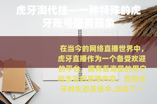 在当今的网络直播世界中,虎牙直播作为一个备受欢迎的平台,拥有着海量的用户和丰富的直播内容,而在虎牙的生态系统中,出现了一种名为虎牙淘代挂的服务。