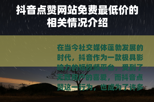 在当今社交媒体蓬勃发展的时代,抖音作为一款极具影响力的短视频平台,受到了无数用户的喜爱,而抖音点赞这一行为,也成为了许多用户关注的焦点,抖音点赞网站免费最低价的话题更是引起了不少人的兴趣。