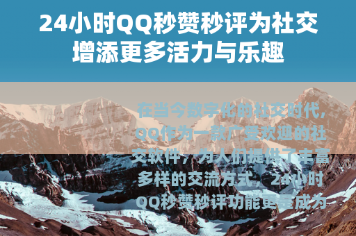 在当今数字化的社交时代,QQ作为一款广受欢迎的社交软件,为人们提供了丰富多样的交流方式,24小时QQ秒赞秒评功能更是成为了许多用户喜爱的特色之一,它为社交互动增添了更多的活力与乐趣。