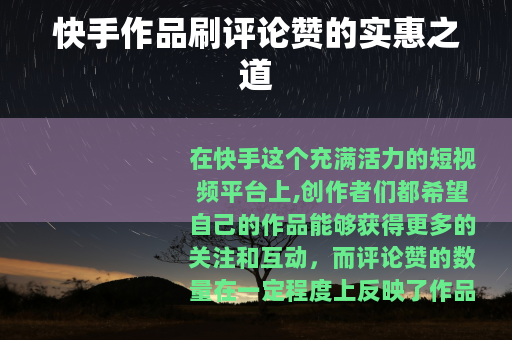 在快手这个充满活力的短视频平台上,创作者们都希望自己的作品能够获得更多的关注和互动,而评论赞的数量在一定程度上反映了作品的受欢迎程度,如何以较为便宜的方式来提升快手作品的评论赞数量呢?