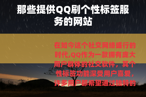 在如今这个社交网络盛行的时代,QQ作为一款拥有庞大用户群体的社交软件,其个性标签功能深受用户喜爱,许多用户都希望通过独特的个性标签来展示自己的个性与特色,而这也催生了一些所谓的QQ刷个性标签网站。