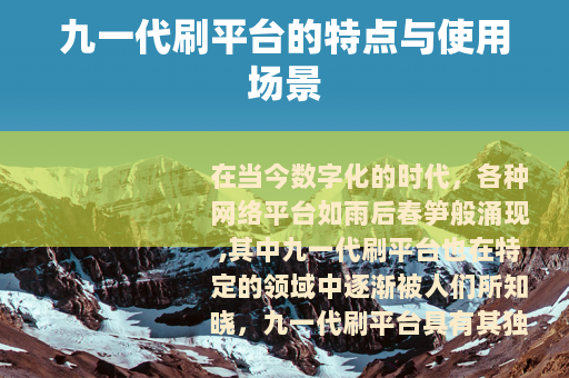 在当今数字化的时代,各种网络平台如雨后春笋般涌现,其中九一代刷平台也在特定的领域中逐渐被人们所知晓。