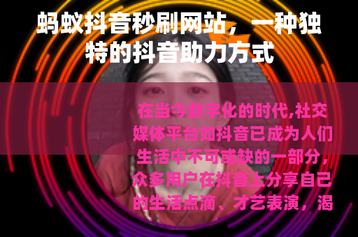 在当今数字化的时代,社交媒体平台如抖音已成为人们生活中不可或缺的一部分,众多用户在抖音上分享自己的生活点滴、才艺表演,渴望获得更多的关注和点赞,而在这个过程中,一些相关的辅助工具也应运而生,其中就包括蚂蚁抖音秒刷网站。