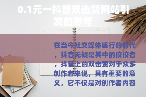 随着抖音的火爆,市场上也出现了各种与之相关的现象,其中就包括一些声称0.1元一个抖音双击赞的网站,这些网站的出现,引起了不少人的关注和讨论,对于创作者而言,看到这样的价格,可能会心动不已,毕竟,以如此低的成本获取大量的双击赞,似乎是一条快速提升自己作品热度的捷径。