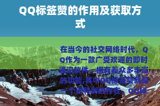 在当今的社交网络时代,QQ作为一款广受欢迎的即时通讯软件,拥有着众多丰富的功能,其中QQ标签赞就是一个很特别的存在。