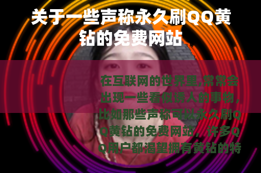 在互联网的世界里,常常会出现一些看似诱人的事物,比如那些声称可以永久刷QQ黄钻的免费网站,许多QQ用户都渴望拥有黄钻的特权,它能让自己的QQ空间变得更加绚丽多彩,拥有独特的装扮和更多的个性化功能,而这些免费刷黄钻的网站,就像一个个神秘的宝藏,吸引着不少人的目光。
