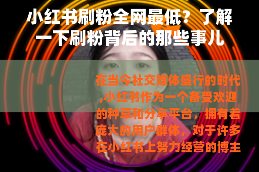 在当今社交媒体盛行的时代,小红书作为一个备受欢迎的种草和分享平台,拥有着庞大的用户群体,对于许多在小红书上努力经营的博主和商家来说,粉丝数量似乎成为了衡量成功的一个重要标准。“小红书刷粉全网最低”这样的宣传语便应运而生,吸引了不少人的目光。