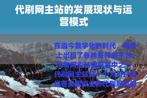 在当今数字化的时代,网络上出现了各种各样的平台,代刷网主站便是其中之一,代刷网主站是一个为用户提供各类虚拟业务代刷服务的网络平台,它在互联网的世界里有着独特的运营模式和发展轨迹。