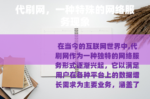 在当今的互联网世界中,代刷网作为一种独特的网络服务形式逐渐兴起,它以满足用户在各种平台上的数据增长需求为主要业务,涵盖了众多领域。