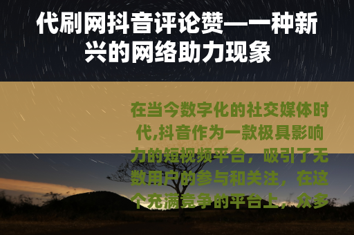 在当今数字化的社交媒体时代,抖音作为一款极具影响力的短视频平台,吸引了无数用户的参与和关注,在这个充满竞争的平台上,众多创作者都希望自己的作品能够获得更多的曝光和认可,于是一种名为代刷网抖音评论赞的服务应运而生。