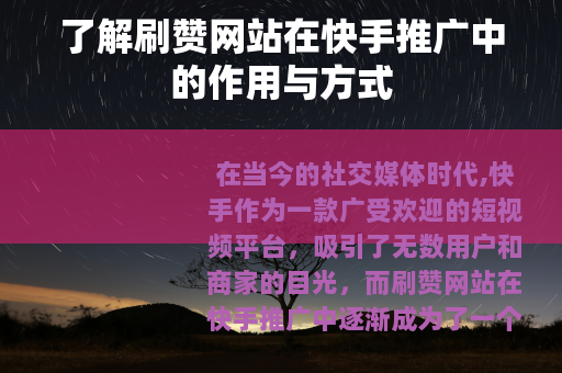 在当今的社交媒体时代,快手作为一款广受欢迎的短视频平台,吸引了无数用户和商家的目光,而刷赞网站在快手推广中逐渐成为了一个备受关注的话题。