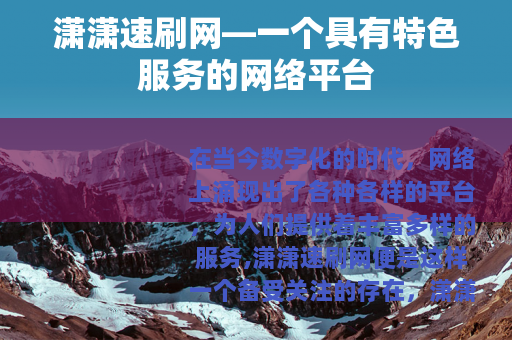 在当今数字化的时代,网络上涌现出了各种各样的平台,为人们提供着丰富多样的服务,潇潇速刷网便是这样一个备受关注的存在。