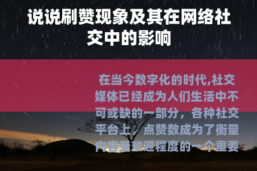 在当今数字化的时代,社交媒体已经成为人们生活中不可或缺的一部分,各种社交平台上,点赞数成为了衡量内容受欢迎程度的一个重要指标,而与之相关的刷赞行为也逐渐引起了人们的关注。