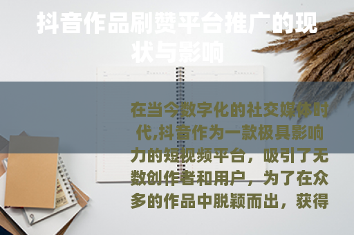 在当今数字化的社交媒体时代,抖音作为一款极具影响力的短视频平台,吸引了无数创作者和用户,为了在众多的作品中脱颖而出,获得更多的关注和点赞,一些抖音作品刷赞平台应运而生并逐渐兴起,它们的推广也在一定范围内展开。