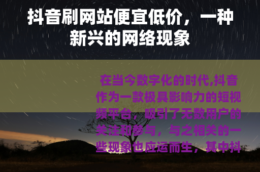 在当今数字化的时代,抖音作为一款极具影响力的短视频平台,吸引了无数用户的关注和参与,与之相关的一些现象也应运而生,其中抖音刷网站以其便宜低价的特点,逐渐成为了一个热门话题。