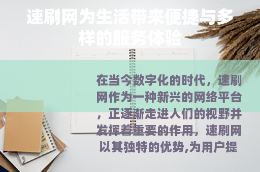 在当今数字化的时代,速刷网作为一种新兴的网络平台,正逐渐走进人们的视野并发挥着重要的作用,速刷网以其独特的优势,为用户提供了一系列丰富而便捷的服务。