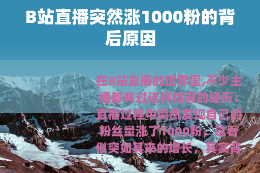 在B站直播的世界里,不少主播都有过这样惊喜的经历:直播过程中突然发现自己的粉丝量涨了1000粉,这看似突如其来的增长,其实背后有着多种可能的原因。