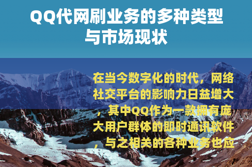 在当今数字化的时代,网络社交平台的影响力日益增大,其中QQ作为一款拥有庞大用户群体的即时通讯软件,与之相关的各种业务也应运而生,QQ代网刷业务便是其中之一。