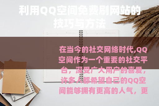 在当今的社交网络时代,QQ空间作为一个重要的社交平台,深受广大用户的喜爱,许多人都希望自己的QQ空间能够拥有更高的人气,更多的点赞、评论和访客量,而QQ空间免费刷网站便应运而生,为用户提供了一种提升空间热度的途径。