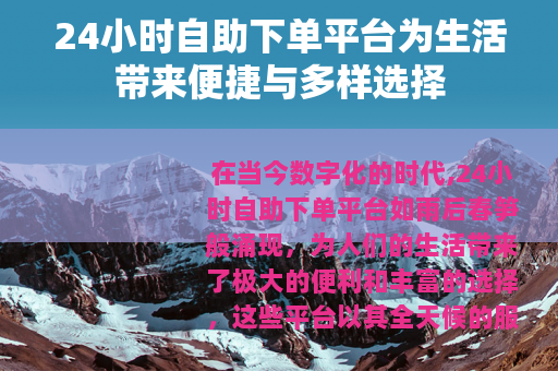 在当今数字化的时代,24小时自助下单平台如雨后春笋般涌现,为人们的生活带来了极大的便利和丰富的选择,这些平台以其全天候的服务模式,满足了不同人群在不同时间段的各种需求,成为现代生活中不可或缺的一部分。