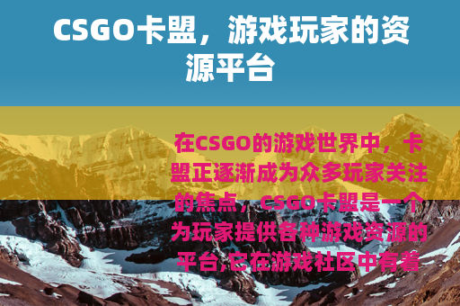 在CSGO的游戏世界中,卡盟正逐渐成为众多玩家关注的焦点,CSGO卡盟是一个为玩家提供各种游戏资源的平台,它在游戏社区中有着独特的地位和作用。