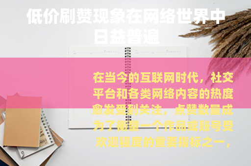 在当今的互联网时代,社交平台和各类网络内容的热度愈发受到关注,点赞数量成为了衡量一个作品或账号受欢迎程度的重要指标之一,而低价刷赞这一现象也随之悄然兴起,在网络的各个角落中逐渐变得常见起来。