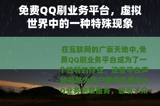 在互联网的广袤天地中,免费QQ刷业务平台成为了一个独特的存在,这些平台声称能够为用户提供免费的QQ业务刷取服务,吸引了众多QQ用户的关注。