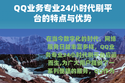 在当今数字化的时代,网络服务日益丰富多样,QQ业务专业24小时代刷平台应运而生,为广大用户提供了一系列便捷的服务。
