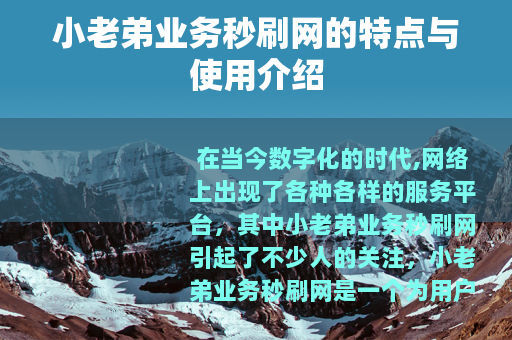 在当今数字化的时代,网络上出现了各种各样的服务平台,其中小老弟业务秒刷网引起了不少人的关注,小老弟业务秒刷网是一个为用户提供特定业务快速处理服务的平台。