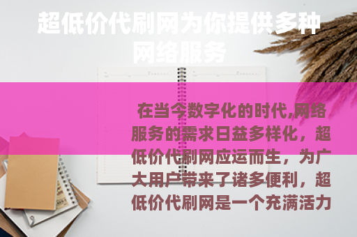 在当今数字化的时代,网络服务的需求日益多样化,超低价代刷网应运而生,为广大用户带来了诸多便利。