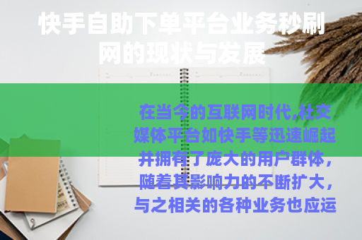在当今的互联网时代,社交媒体平台如快手等迅速崛起并拥有了庞大的用户群体,随着其影响力的不断扩大,与之相关的各种业务也应运而生,其中快手自助下单平台业务秒刷网便是近年来备受关注的一种现象。