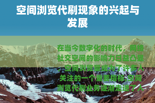 在当今数字化的时代,网络社交空间的影响力日益凸显,空间浏览量成为了许多人关注的一个重要指标,空间浏览代刷业务逐渐走进了人们的视野。