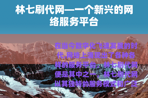 在当今数字化飞速发展的时代,网络上涌现出了各种各样的服务平台,林七刷代网便是其中之一,林七刷代网以其独特的服务模式和广泛的业务范围,在网络世界中逐渐崭露头角。