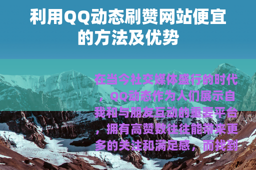 在当今社交媒体盛行的时代,QQ动态作为人们展示自我和与朋友互动的重要平台,拥有高赞数往往能带来更多的关注和满足感,而找到便宜的QQ动态刷赞网站,也成为了不少人想要了解的事情。