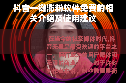 对于那些希望在抖音上增加粉丝数量的创作者来说,应该如何正确看待和使用抖音一键涨粉软件免费呢?